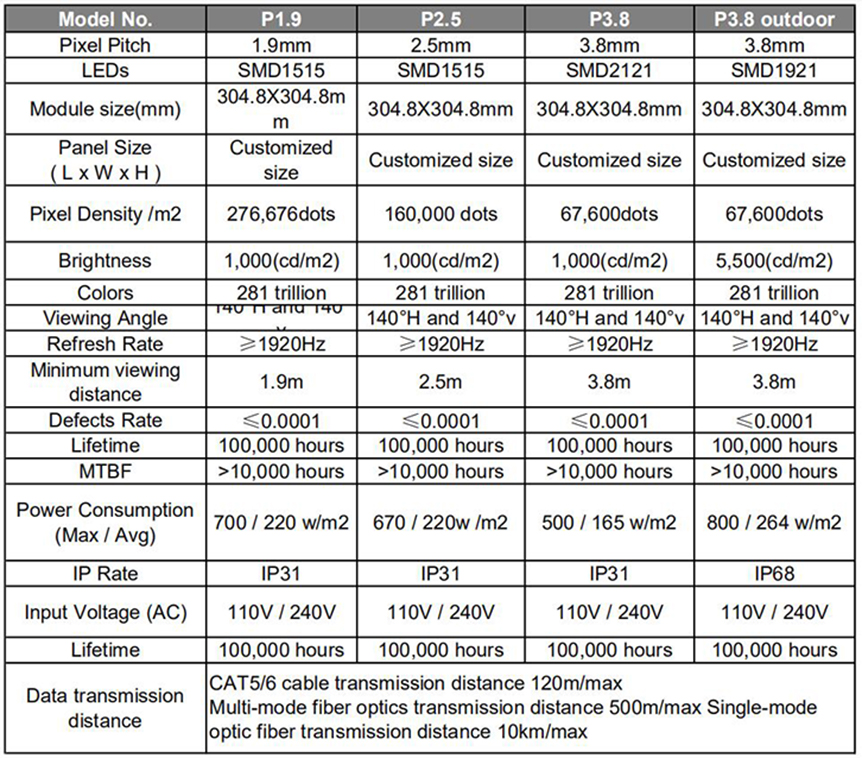 पिक्सेल खेळपट्टीवरपी 1.9 / पी 2.5 / पी 3.8